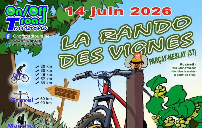 Venez participer à la Rando des Vignes de Parçay-Meslay (VTT, Gravel et pédestre) le 14 Juin 2026.