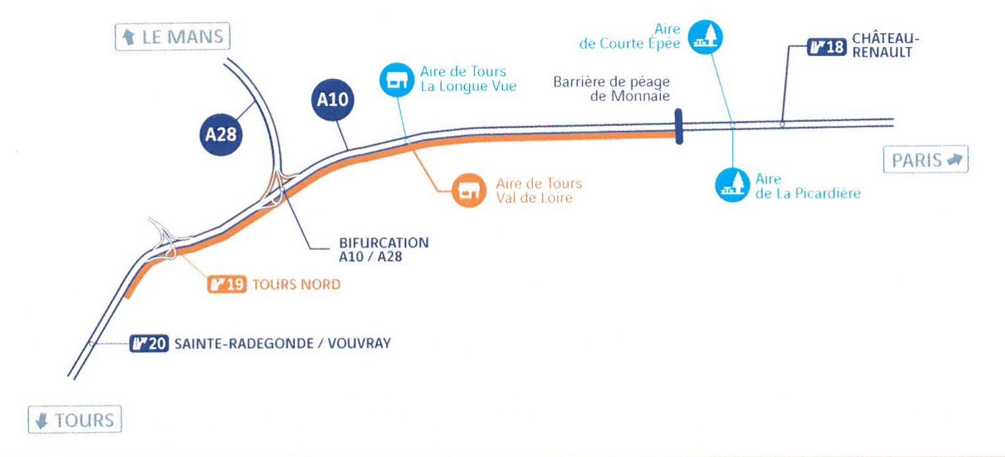 A compter du 23 février 2026, VINCI Autoroutes démarre des travaux d'entretien de la chaussée de l'autoroute A10, situés entre l'échangeur Vouvray (n°20) et la barrière de péage de Monnaie, dans le sens Bordeaux > Paris.