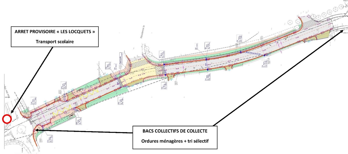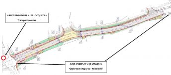 - Des bacs collectifs de collecte des ordures ménagères et de tri sélectif seront installés aux extrémités de la zone des travaux, à destination de tous les habitants.